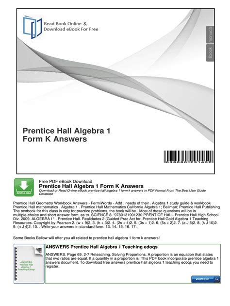 Read Online prentice hall algebra 1 test answer sheet Nook ManyBooks